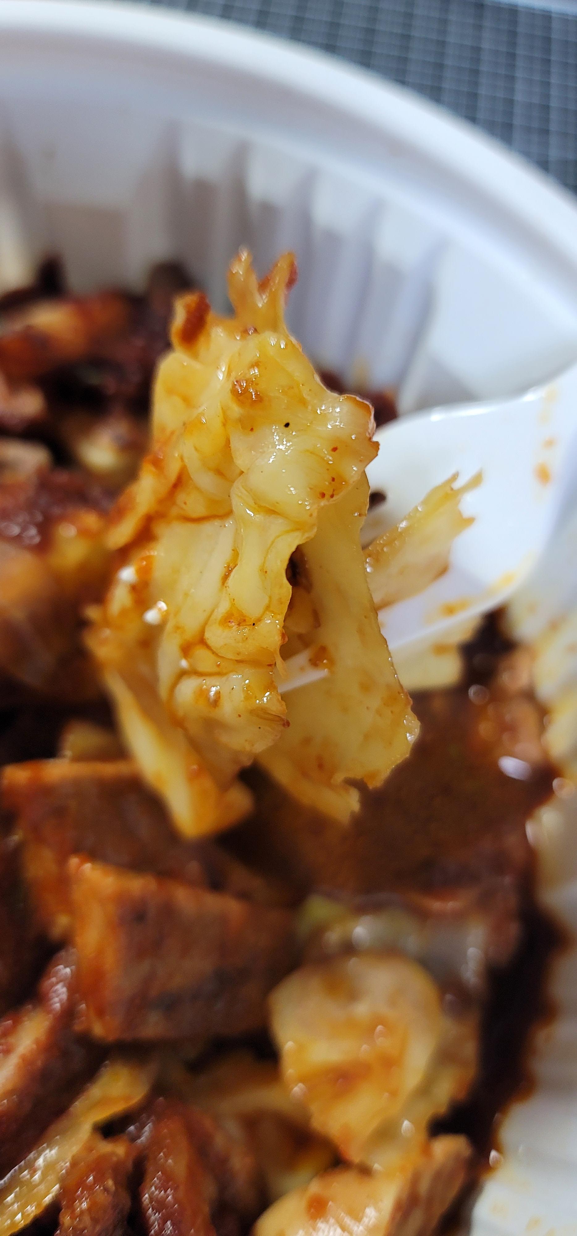 양념에 절여진 양파, 양배추가 맵단짠의 맛을 씻어주는 느낌이라고 해야 하나.. 양배추가 목 메임을 줄여줘서 고기를 더 많이 먹게 되는 거 같다.. 양배추와의 조합이 찐 맛을 만들어주는 조합이 아닌가 싶다
